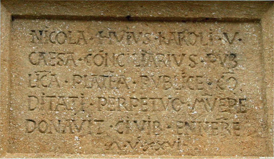 L'église d'ENNERY occupe le fond d'une place plantée d'arbres et bordée sur le côté droit par des bâtiments d'une belle uniformité, dont la mairie. Cette place fut donnée aux habitants par Nicolle IV, conseiller de l'empereur Charles V dit Charles Quint, en 1537. Une plaque apposée sur la façade de la maison Folny rappelle cette donation.