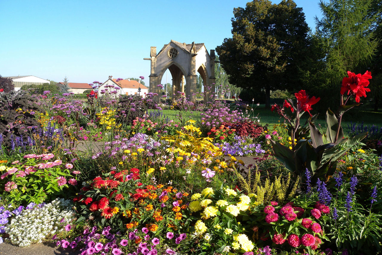 Avec le concours d'un architecte messin, il établit les plans du futur édifice. Dans un même temps, il fait venir des carrières de Jaumont de belles pierres couleur or, que s'empressent aussitôt de tailler d'après les plans prévus, les nombreux ouvriers spécialisés qu'il a fait venir de Metz. Les travaux s'effectuent avec ardeur sur un terrain situé non loin du lieu où doit être érigé le monument.