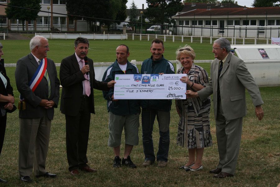 Après avoir rappelé l'historique du club, M. Michel céda la parole aux deux élus, puis au président de la ligue de Lorraine de football. A la suite de ces discours, il fut remis au club un chèque de 25.000 € à titre de participation à l'effort consacré à la construction de ce terrain. En présence de nombreuses personnes, le ruban tricolore fut coupé, rendant ainsi officiellement le terrain aux amoureux du ballon rond.