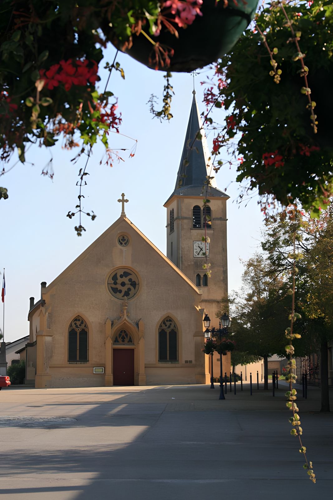 L'église d'ENNERY occupe le fond d'une place plantée d'arbres et bordée sur le côté droit par des bâtiments d'une belle uniformité, dont la mairie. Cette place fut donnée aux habitants par Nicolle IV, conseiller de l'empereur Charles V dit Charles Quint, en 1537. Une plaque apposée sur la façade de la maison Folny rappelle cette donation.