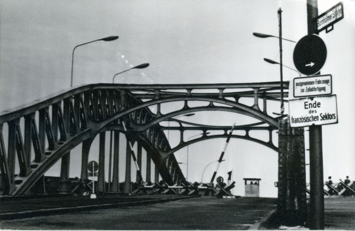 La frontière se situe à la barrière, le mirador est au milieu du pont (Bornholmerstrasse).